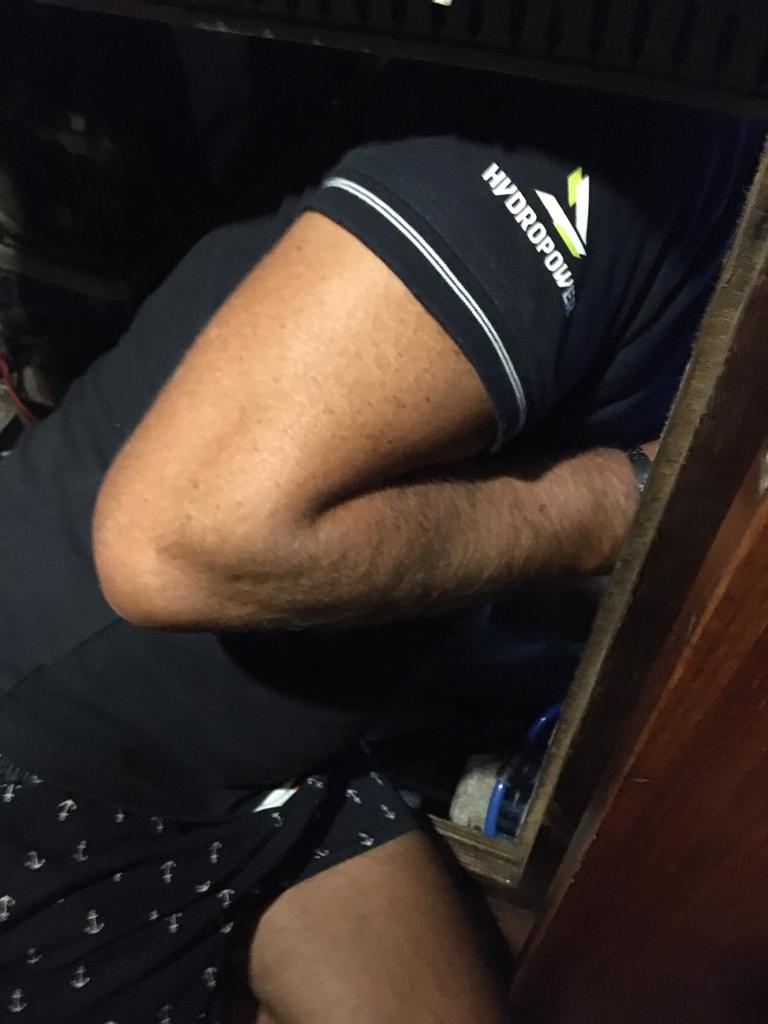 Als das also gemacht war, habe ich dann begonnen die neue Bilgenpumpe einzubauen. Lang genug gedrückt – ausserdem war ich zu faul für Handbetrieb. Das war wieder mal eine lustige Übung. Auf dem Bauch liegend in den Eingeweiden des Schiffes rumfuhrwerken. Eigentlich wollte ich ja noch die elektrischen Anschlüsse der Bilgenpumpe neu machen – aber da kam dann Okan dazwischen.